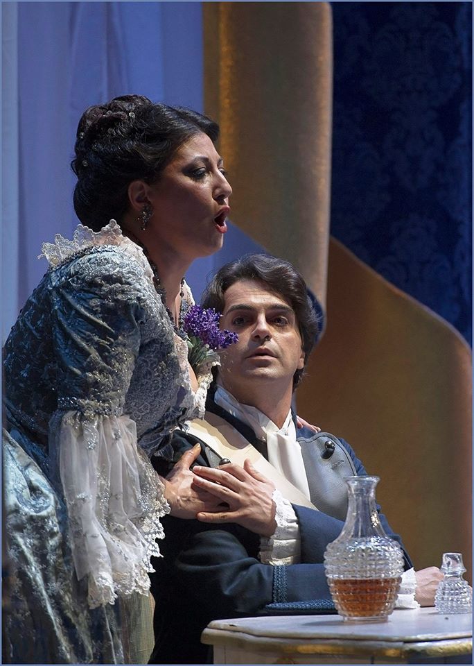 Após o cancelamento, a soprano argentina Virginia Tola, escalada para as récitas extraordinárias, foi transferida para as récitas principais no lugar de Gheorghiu. Segundo a assinante que estava sentada ao meu lado, na primeira fila, uma soprano “muito boa, protegida do Plácido Domingo”. A cantora é conhecida do público paulistano: em 2014 ela foi a Alice Ford no Falstaff do Theatro Municipal, no elenco encabeçado por Ambrogio Maestri. Nessa oportunidade já foi possível constatar que sua voz era pequena e seu vibrato, excessivo. Três anos depois e em papel diferente parece que nada mudou. Virginia Tola conseguiu vencer os desafios de seu papel, ela fez todas as notas, fez os agudos corretamente, com boa afinação, mas foi uma Adriana difícil de ser ouvida da plateia e pouco eficiente cenicamente.